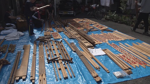 さらにそのだんじりを今解体していると聴き、即公民館に向かう。