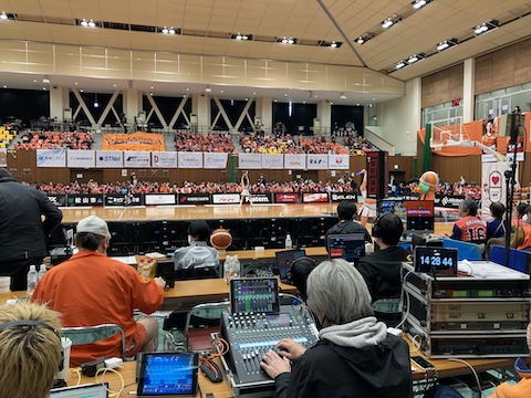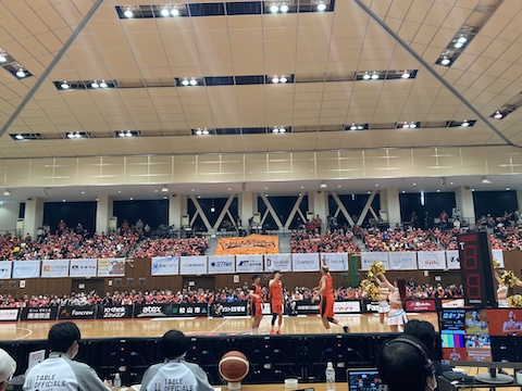 今日も今治市営体育館にて、愛媛オレンジバイキングスのホームゲーム。