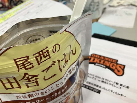 事務所を出る時間がなかったので賞味期限近い防災食を頬張り(笑)