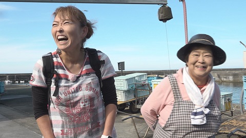 昼頃戻ってきたら水揚げを二人三脚で
