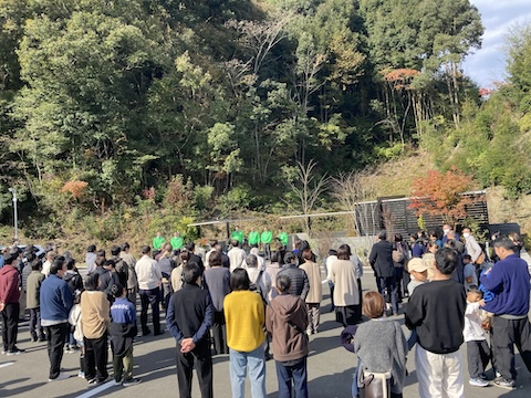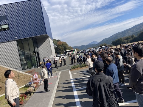 ピカピカの新工場前で除幕式や植樹