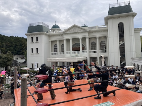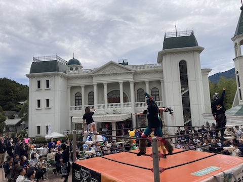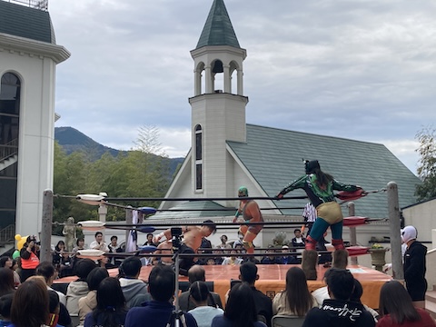 しかも大聖堂のまえに愛媛プロレスのリングを組んで!!
