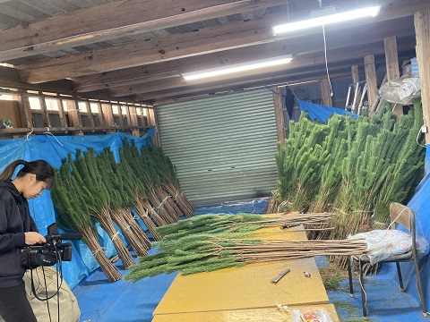 さらに、正月飾りで使用されるであろう松の出荷準備の倉庫にも突撃。