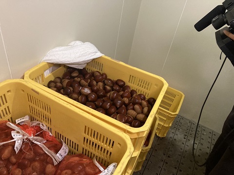 たまたま家の横で焼き栗機の掃除をさせていたから出会えた(笑)