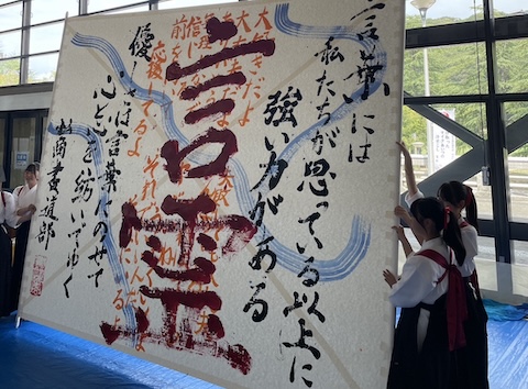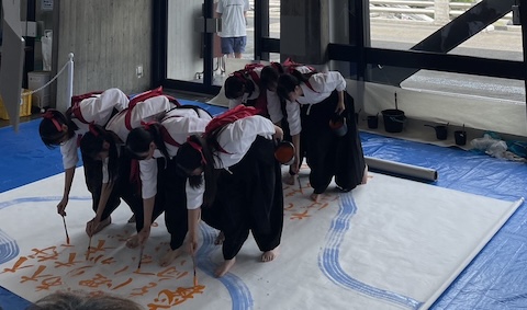 昼休みには、松山商業高校書道部が書道パフォーマンス。